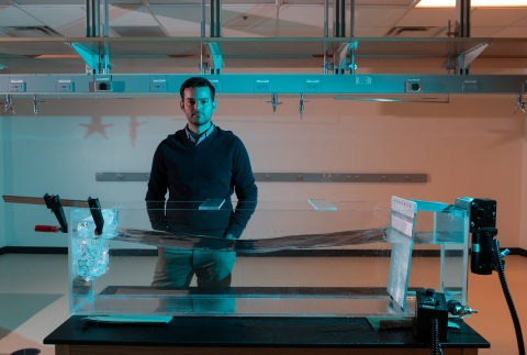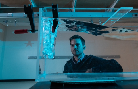 “The water pressure concentrates down to a point called a crack tip. It tries to push the crack apart and make it deeper, and the ice pushes back. When the water gets deep enough, it can win out and propagate the crack to the bottom of the ice shelf,” Robel said.